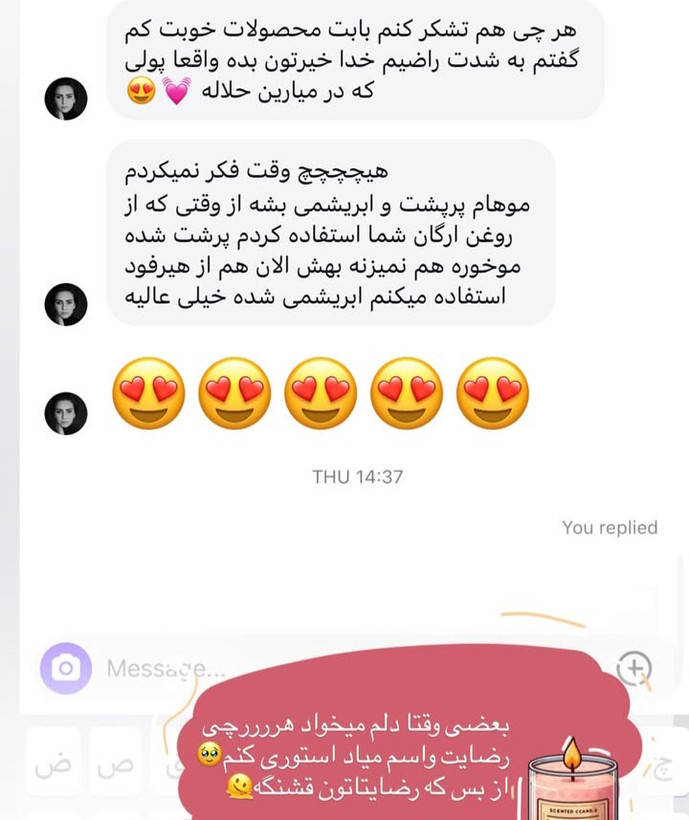 حاوی روغن آرگان ،نارگیل، کرچک ،عصاره ابریشم، ویتامین E