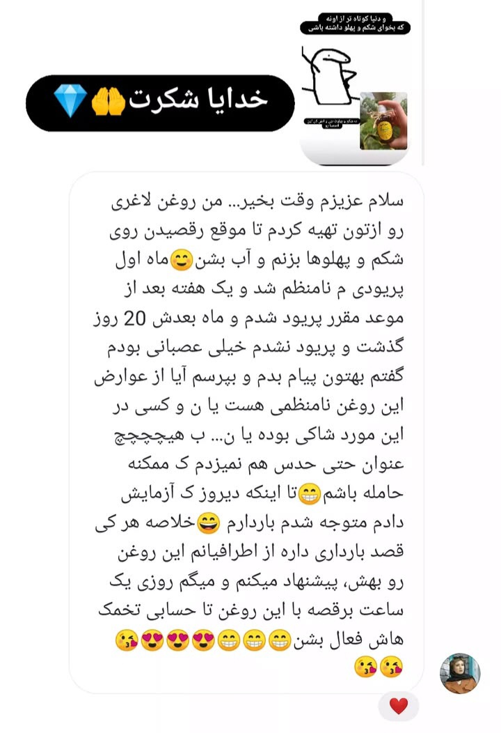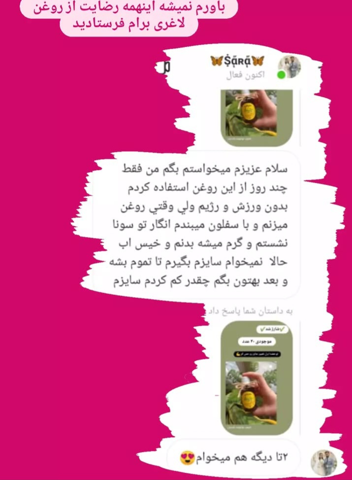 روغن رو هر روز به جای موردنظر بزنید و ماساژ دهید تا جذب بشه میتونید روی ناحیه پلاستیک و یا سلفون بکشید.